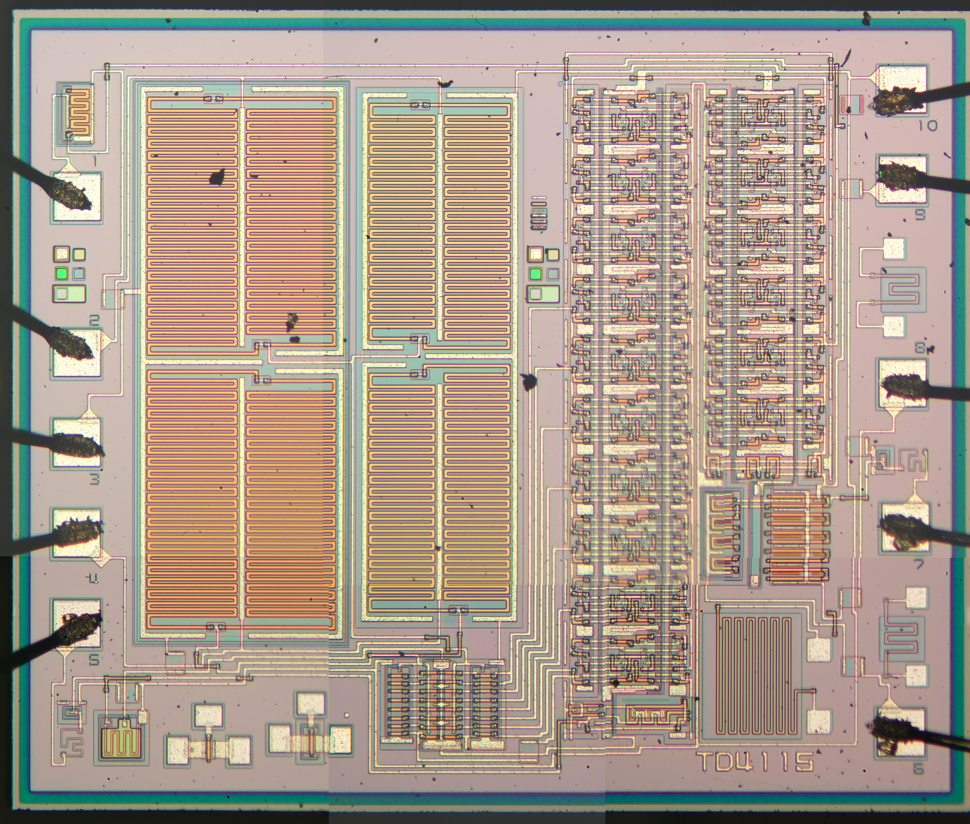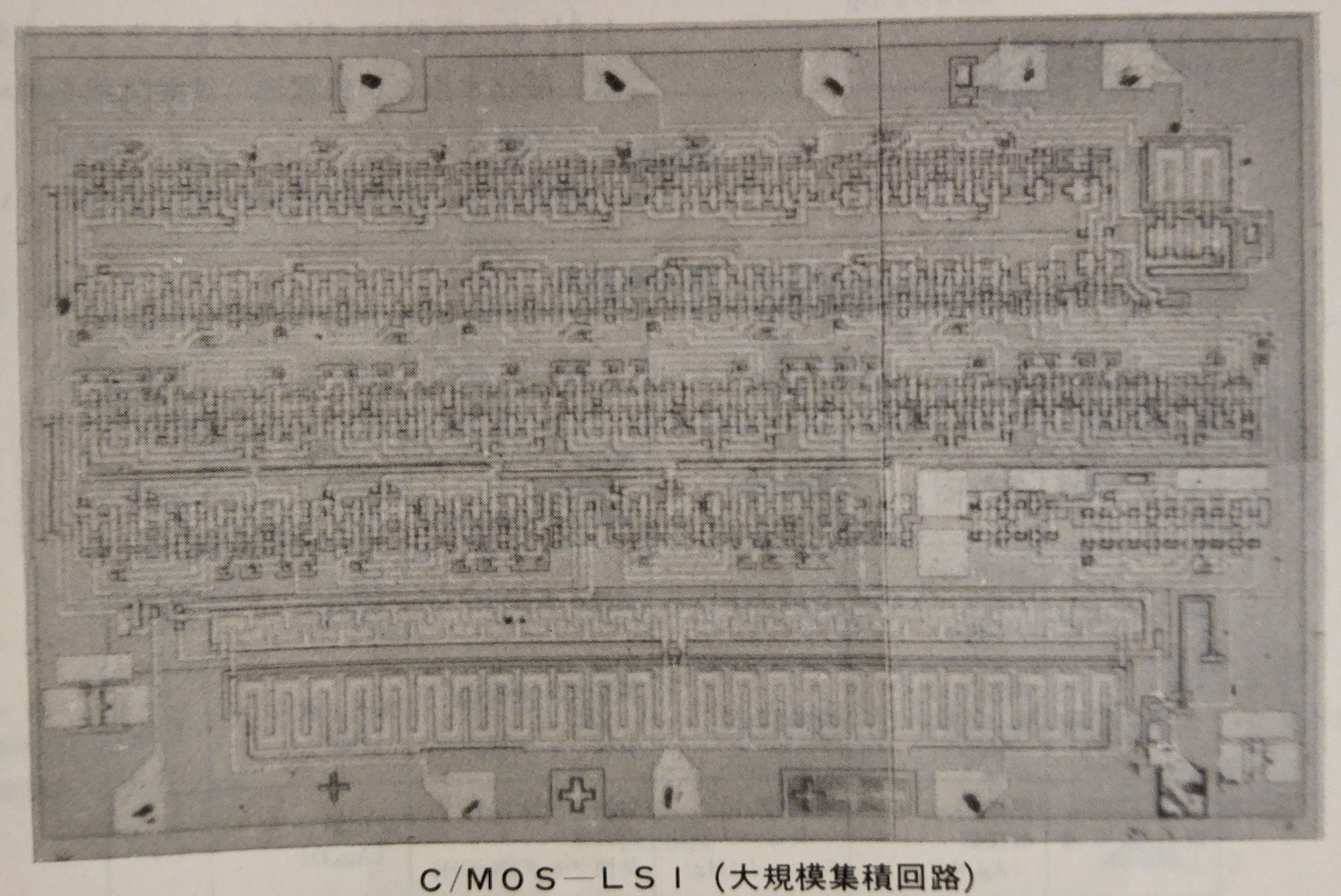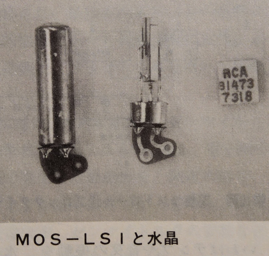 The MOS IC used in the Riquartz 550, compare with the Seiko CMOS below, developed at roughly the same time, both first generation LSI.
