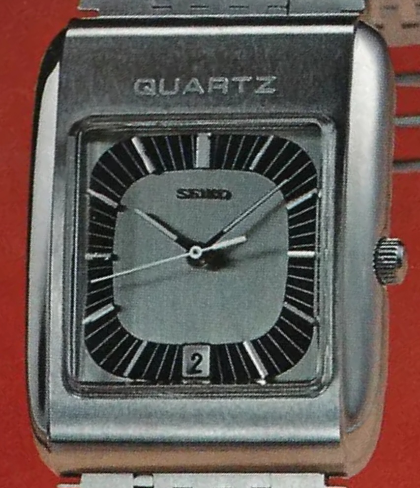First true production quartz watch calibre 3800 series 1971 with in house CMOS IC. Prototype finished April 1971, first watches shipped Nov 1971, 3823 released Dec 1971.