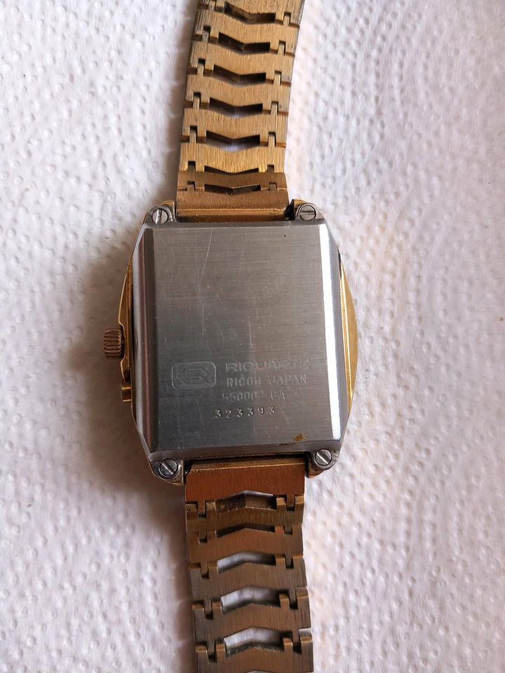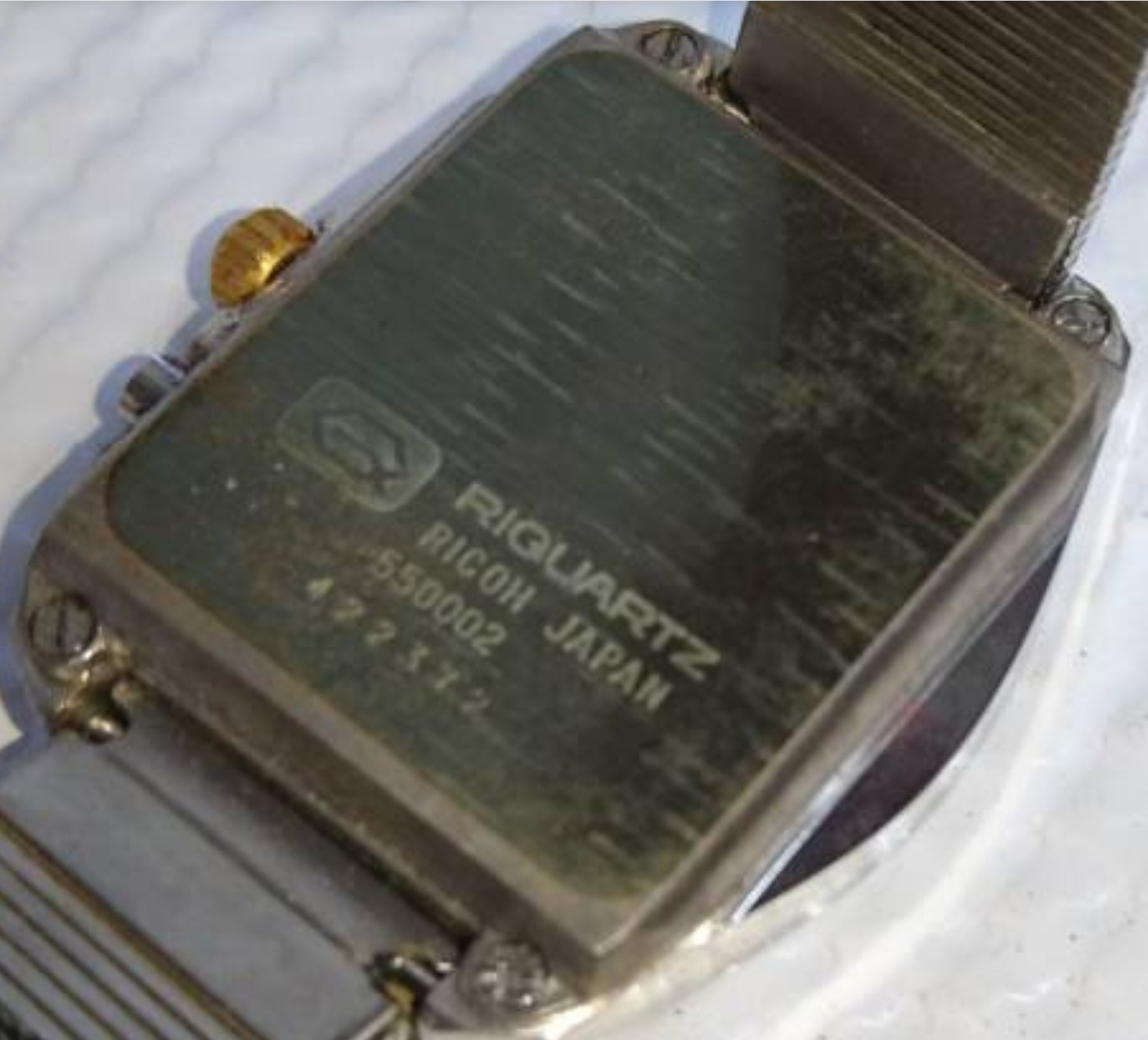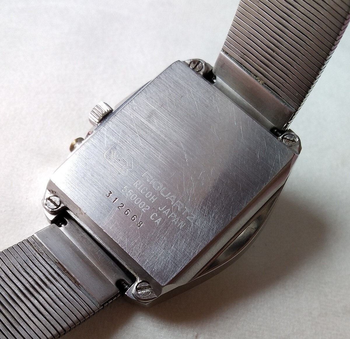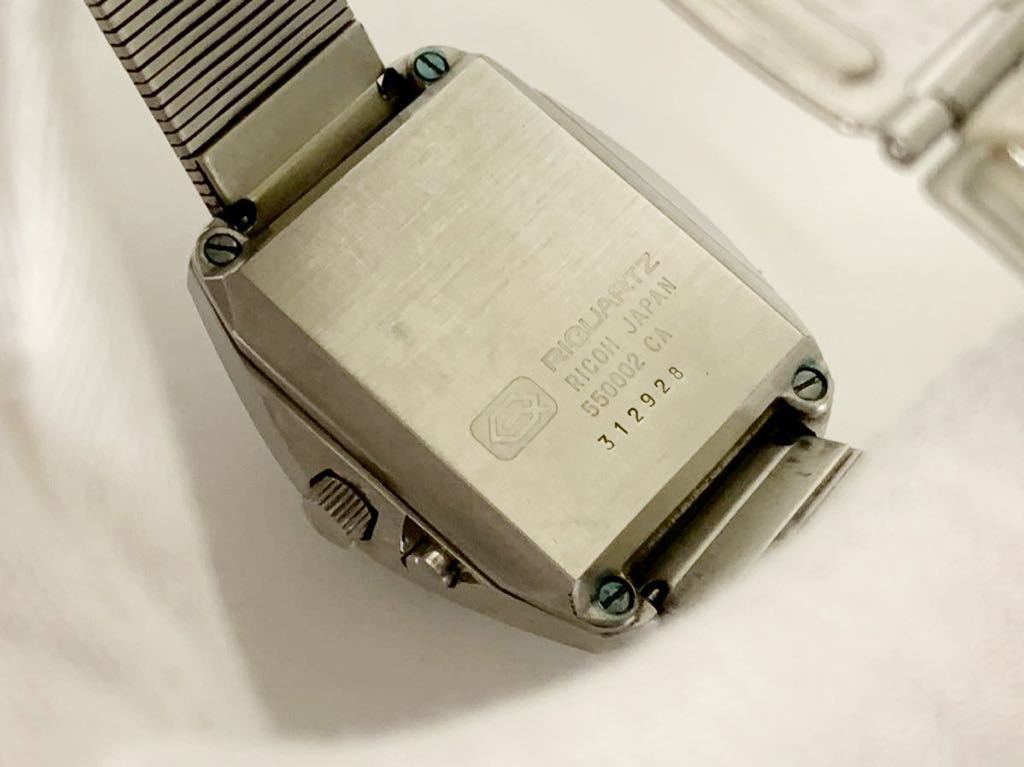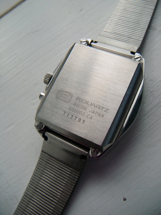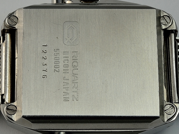 Introduced about 1972, using calibre 550. Available in stainless steel or gold plated. Advertised in Feb 1973 "Playboy" magazine as the “Ricoh quartz crystal wrist computer, guaranteed accurate to 5 seconds a month ... miniature miracle ... guaranteed for two years” for $295 (the mechanical watches carried a ten year guarantee)