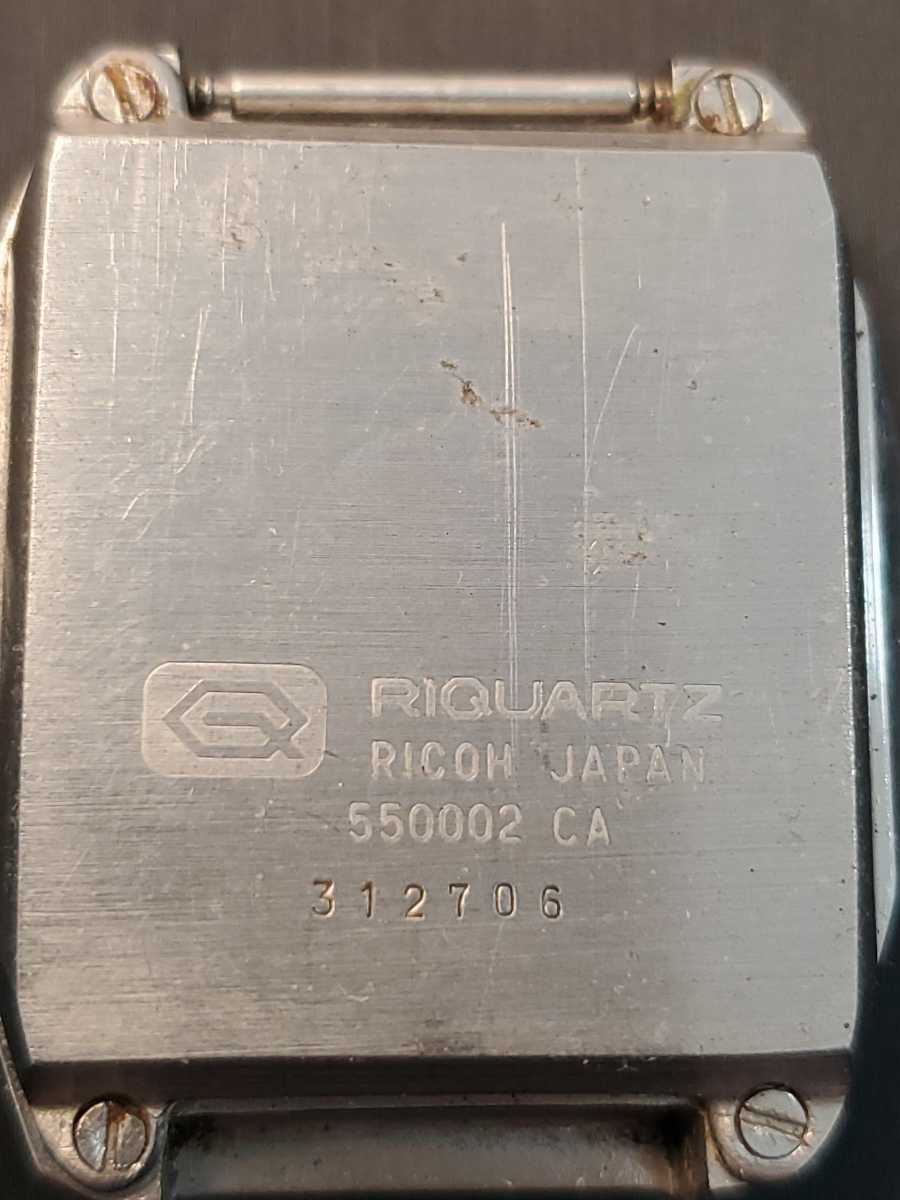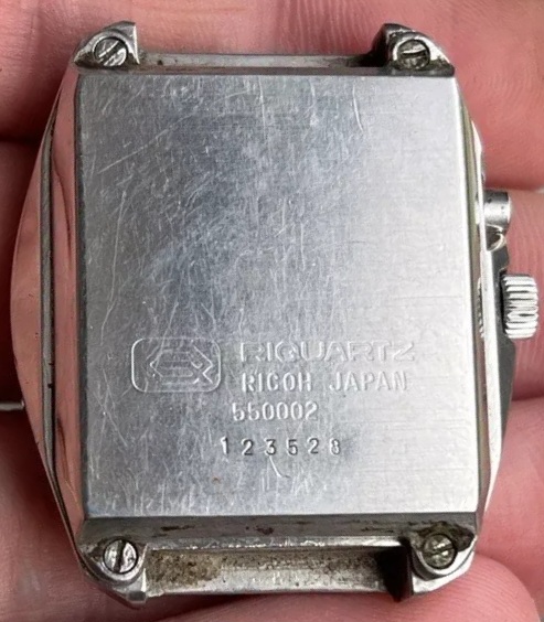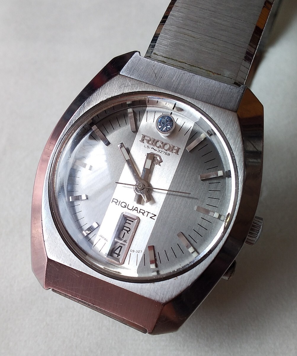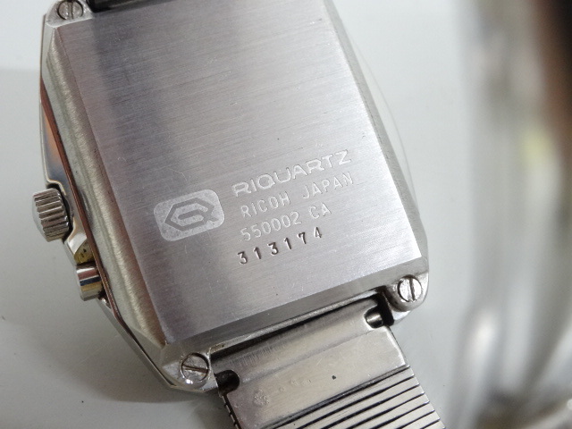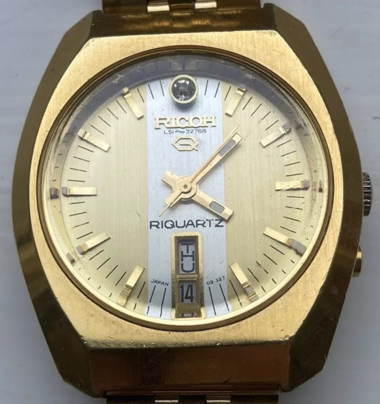 Introduced about 1972, using calibre 550. Available in stainless steel or gold plated. Advertised in Feb 1973 "Playboy" magazine as the “Ricoh quartz crystal wrist computer, guaranteed accurate to 5 seconds a month ... miniature miracle ... guaranteed for two years” for $295 (the mechanical watches carried a ten year guarantee)