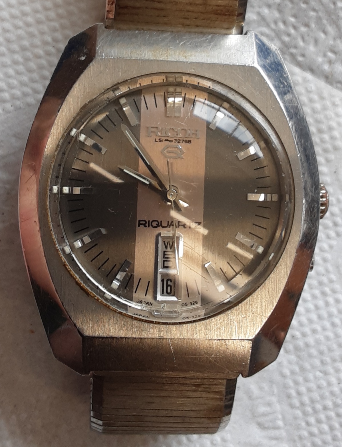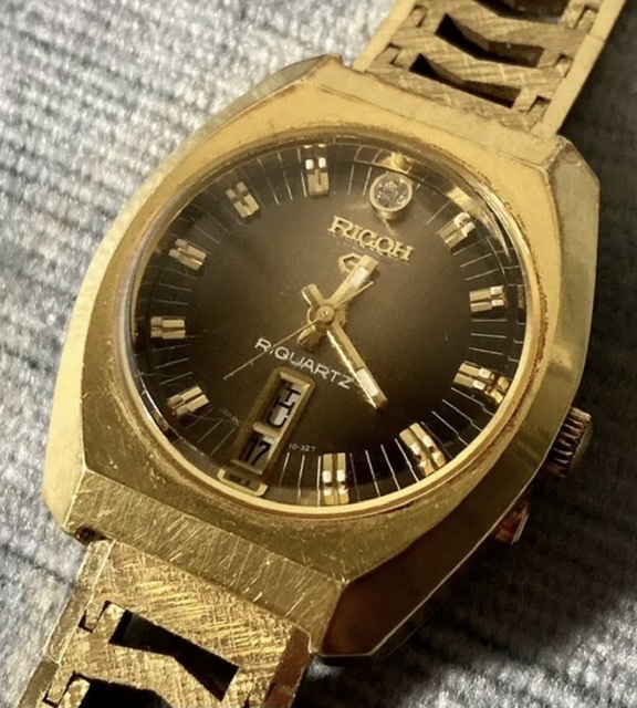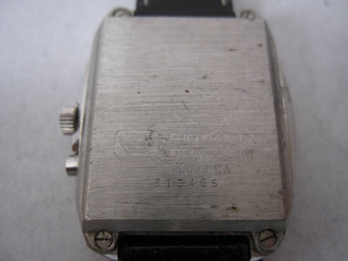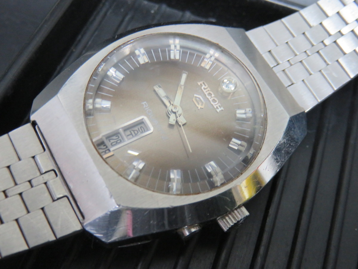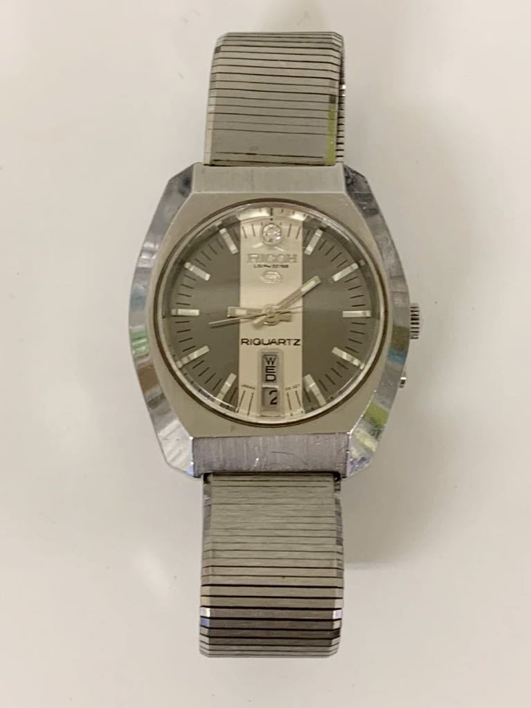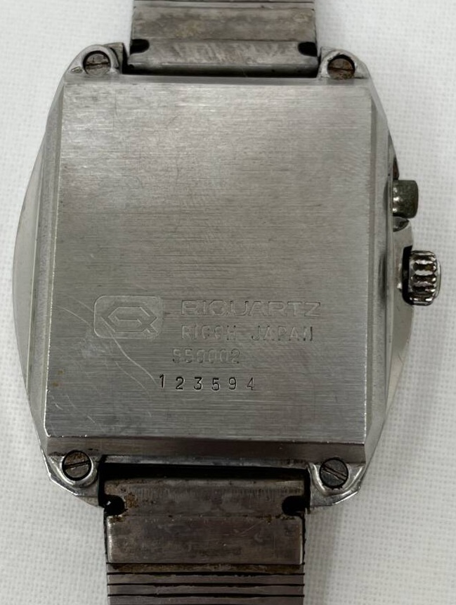 Introduced about 1972, using calibre 550. Available in stainless steel or gold plated. Advertised in Feb 1973 "Playboy" magazine as the “Ricoh quartz crystal wrist computer, guaranteed accurate to 5 seconds a month ... miniature miracle ... guaranteed for two years” for $295 (the mechanical watches carried a ten year guarantee)