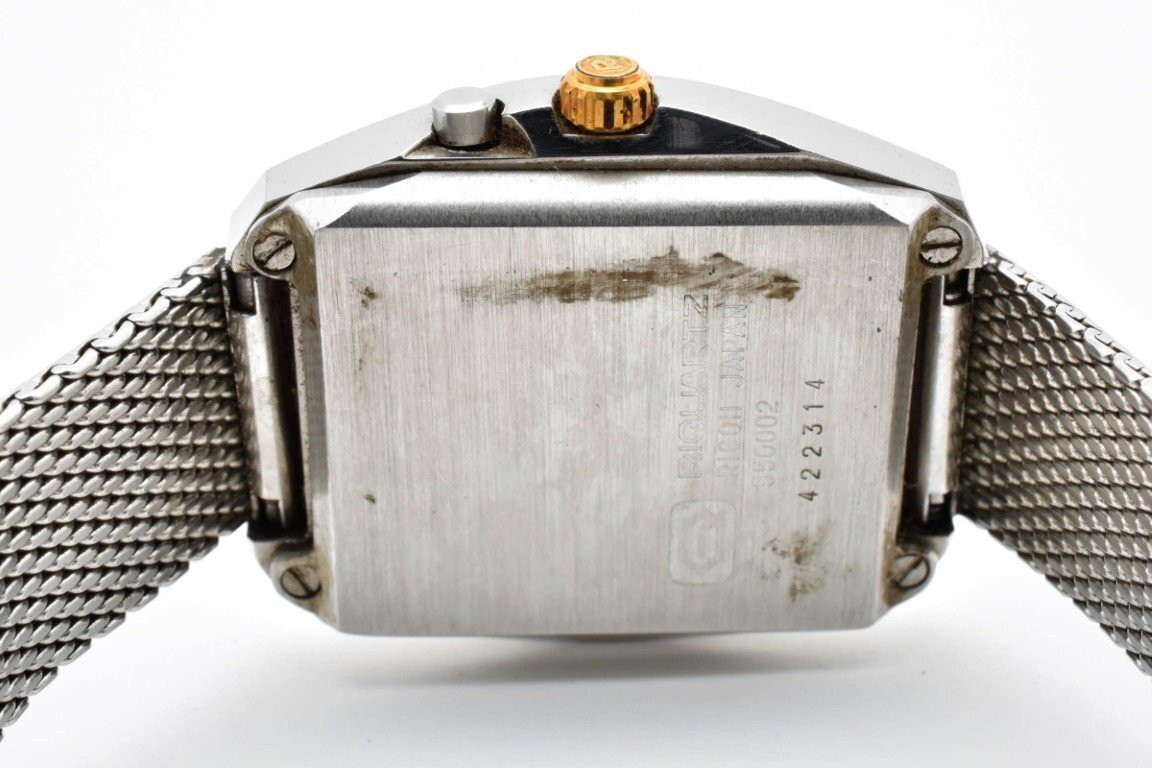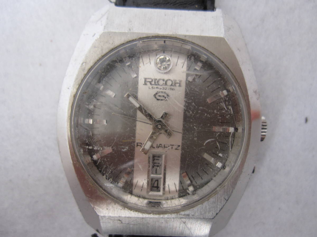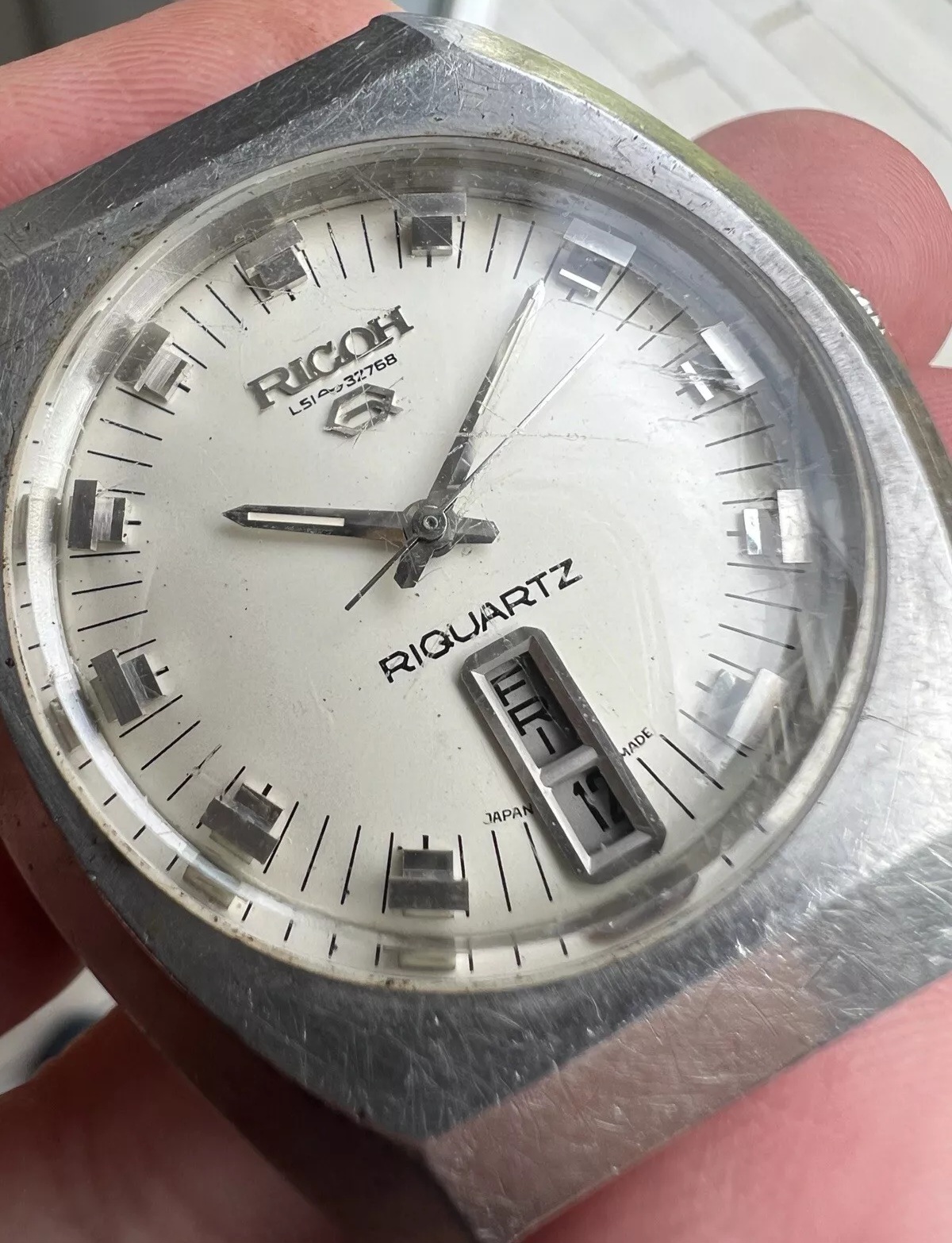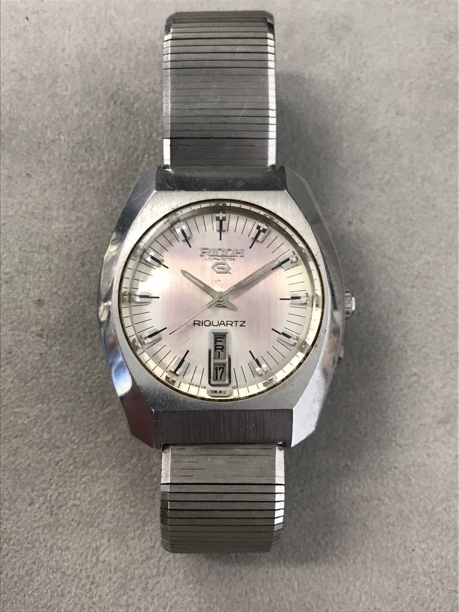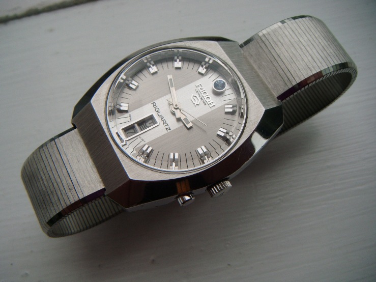 Introduced about 1972, using calibre 550. Available in stainless steel or gold plated. Advertised in Feb 1973 "Playboy" magazine as the “Ricoh quartz crystal wrist computer, guaranteed accurate to 5 seconds a month ... miniature miracle ... guaranteed for two years” for $295 (the mechanical watches carried a ten year guarantee)