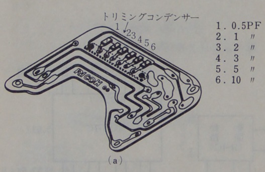 The six capacitor array allows for timing adjustment, starting furthest from crown 0.5 1 2 3 5 10 pF [picoFarads], with a 0.6mm screw and washer.