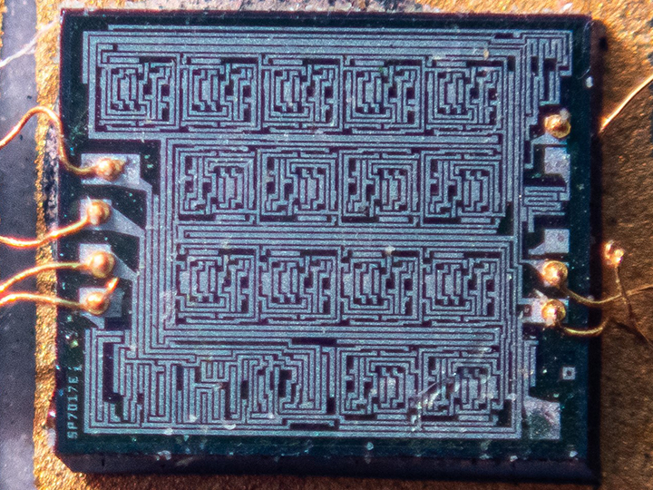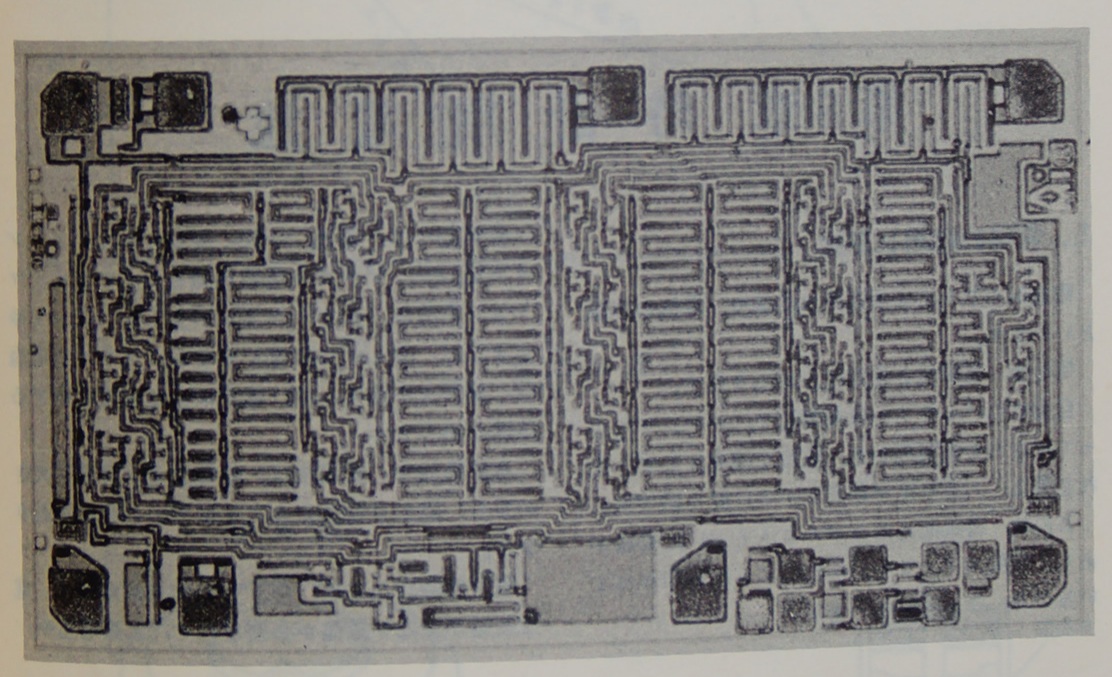 The MOS IC used in the Riquartz 550, compare with the Seiko CMOS below, developed at roughly the same time, both first generation LSI.